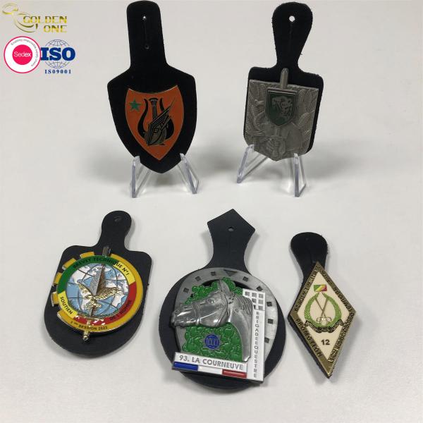 International Custom Shaped Lapel Pins , Soft Enamel Metal Zinc Alloy Badge With Leather Images |